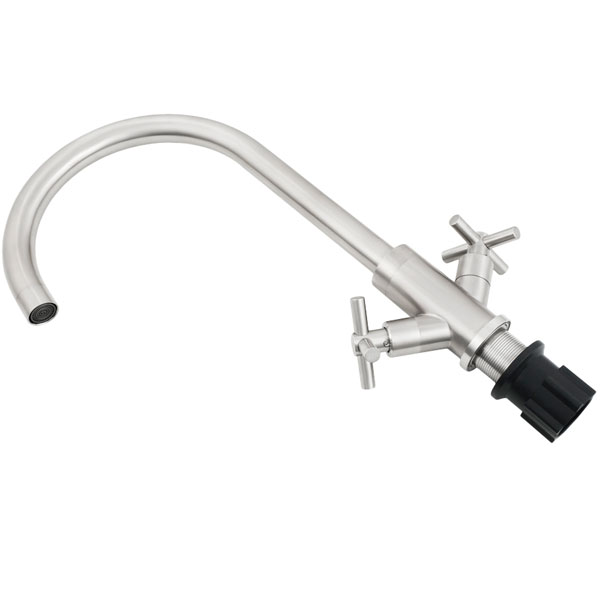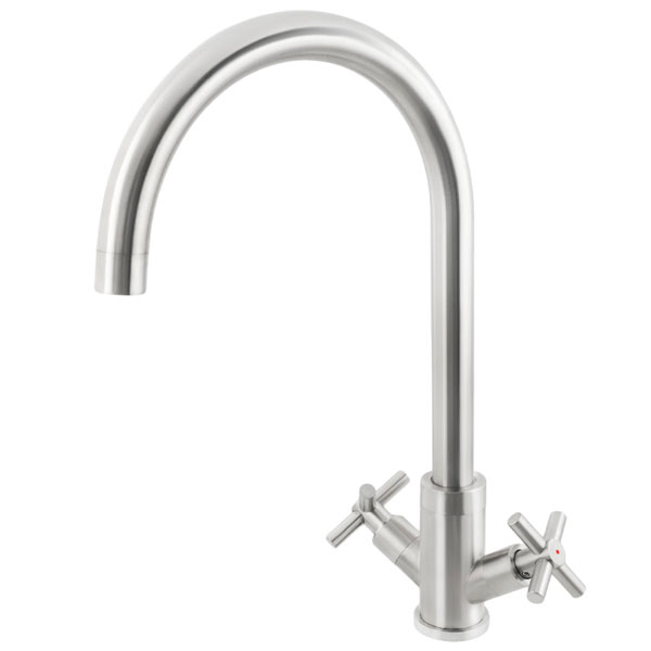 Змішувач для кухні VENTA з вигнутим виливом. Змішувач двовентильний з керамічним картриджем 35 мм. Головною перевагою змішувачів Venta є, те що вони зроблені з харчової нержавіючої сталі SUS 304, яка не містить шкідливих домішок. Такі вироби прослужать не рік і не два, вони можуть не виходити з ладу дуже довго. При правильному використанні не вимагають ніякого ремонту або заміни. Вони не втрачають свій зовнішній вигляд навіть без додаткового догляду. Вся сантехніка має сертифікати якості та санітарно-гігієнічні висновки.