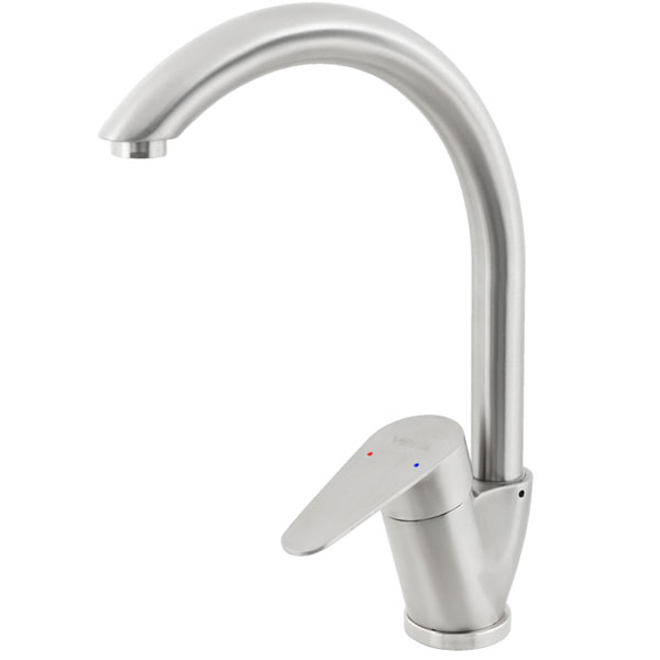 Змішувач для кухні VENTA з вигнутим виливом. Змішувач одноважільний з керамічним картриджем 35 мм. Головною перевагою змішувачів Venta є, те що вони зроблені з харчової нержавіючої сталі SUS 304, яка не містить шкідливих домішок. Такі вироби прослужать не рік і не два, вони можуть не виходити з ладу дуже довго. При правильному використанні не вимагають ніякого ремонту або заміни. Вони не втрачають свій зовнішній вигляд навіть без додаткового догляду. Вся сантехніка має сертифікати якості та санітарно-гігієнічні висновки.