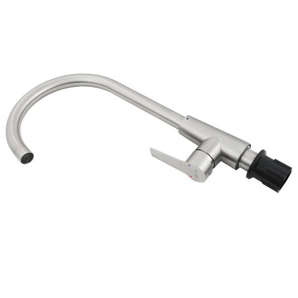 Змішувач для кухні VENTA з вигнутим виливом. Змішувач одноважільний з керамічним картриджем 35 мм. Головною перевагою змішувачів Venta є, те що вони зроблені з харчової нержавіючої сталі SUS 304, яка не містить шкідливих домішок. Такі вироби прослужать не рік і не два, вони можуть не виходити з ладу дуже довго. При правильному використанні не вимагають ніякого ремонту або заміни. Вони не втрачають свій зовнішній вигляд навіть без додаткового догляду. Вся сантехніка має сертифікати якості та санітарно-гігієнічні висновки.
