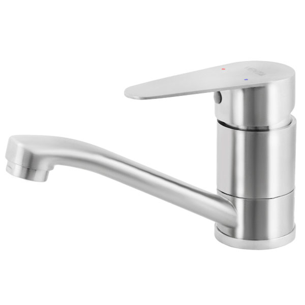 Змішувач для кухні VENTA з вигнутим виливом. Змішувач одноважільний з керамічним картриджем 35 мм. Головною перевагою змішувачів Venta є те що вони зроблені з харчової нержавіючої сталі SUS 304, яка не містить шкідливих домішок. Такі вироби прослужать не рік і не два, вони можуть не виходити з ладу дуже довго. При правильному використанні не вимагають ніякого ремонту або заміни. Вони не втрачають свій зовнішній вигляд навіть без додаткового догляду. Вся сантехніка має сертифікати якості та санітарно-гігієнічні висновки.