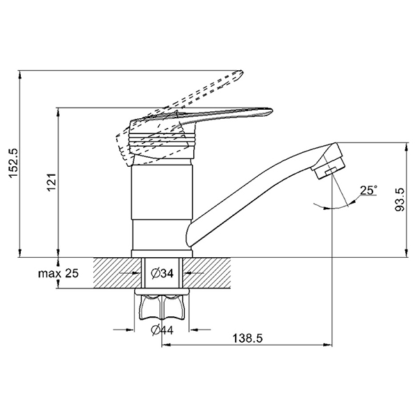Змішувач G-Lauf 4G4-B181 встановлюється на умивальник, має поворотний прямий вилив (гусак) 140мм, литий корпус, одноважільне управління, керамічний картридж діаметром 40мм і гарний сучасний дизайн.