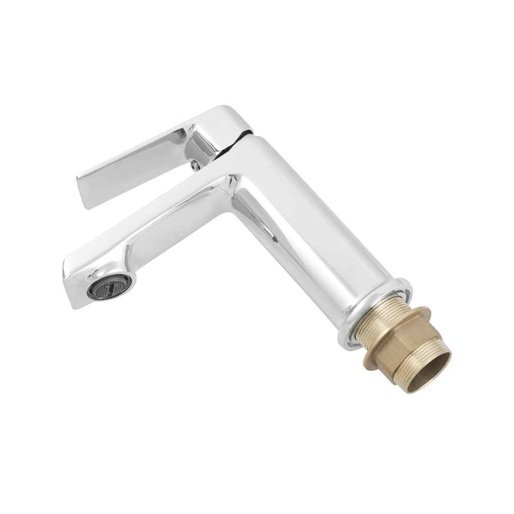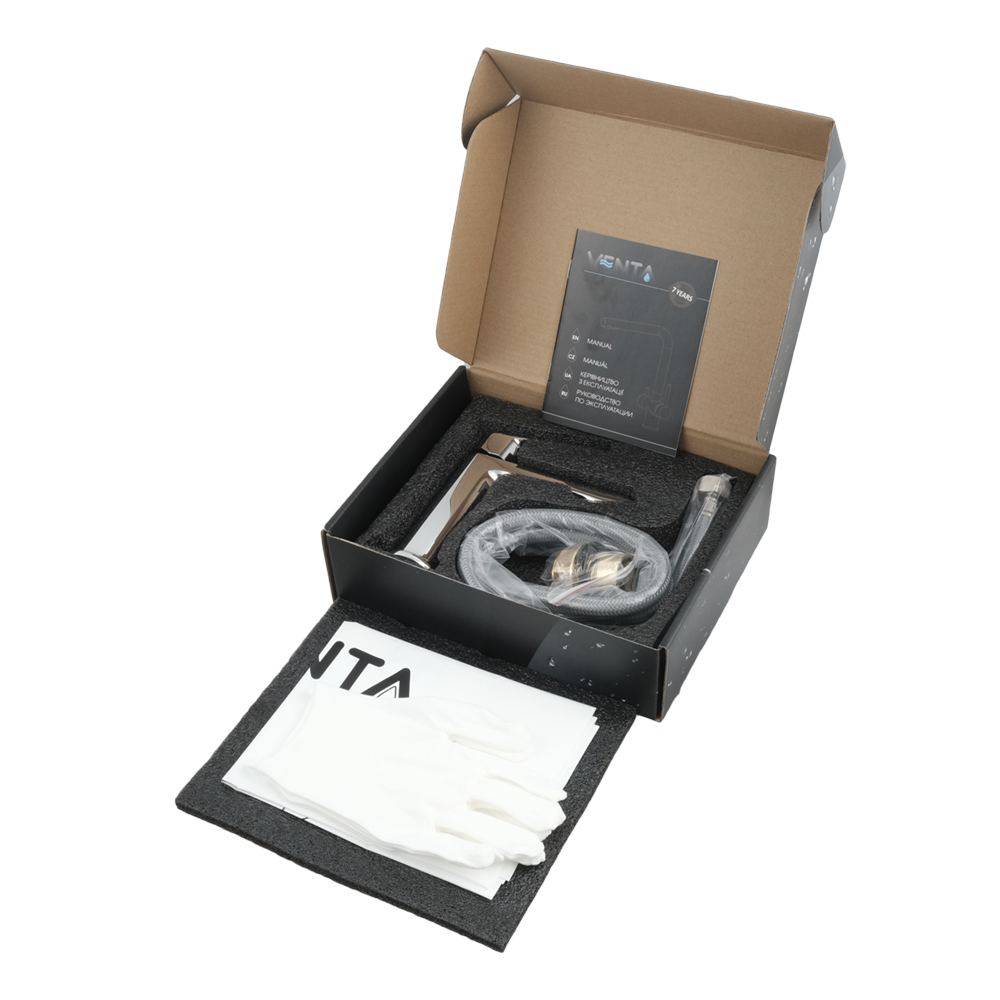 Змішувач для умивальника VENTA BT135MC — модель, яка вирізняється плавним корпусом із делікатним округленням, що надає їй витонченого вигляду. При цьому вилив та важіль залишаються прямокутними — така контрастна комбінація додає змішувачу візуальної глибини. Виготовлений із високоякісної латуні, змішувач стійкий до зношування, а глянцеве покриття довго зберігає свій блиск навіть за інтенсивного використання.