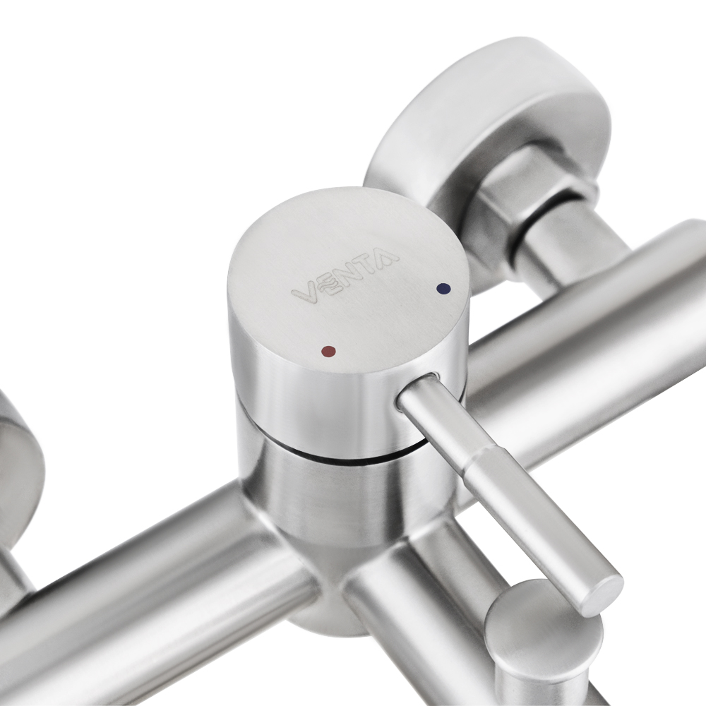 Змішувач для ванни VENTA з плоским виливом. Змішувач одноважільний з керамічним картриджем 35 мм. Всі змішувачі VENTA - це вироби, повністю виготовлено з нержавіючої сталі, тому продукція після тривалої служби зберігає свій блиск. В основу виготовлення змішувача була закладена простота форм в поєднанні зі зручним і стильним дизайном, тому дана модель відмінно підійде для будь-якого інтер'єру і впишеться в будь-яку колірну гамму. Вся сантехніка має сертифікати якості та санітарно-гігієнічні висновки.
